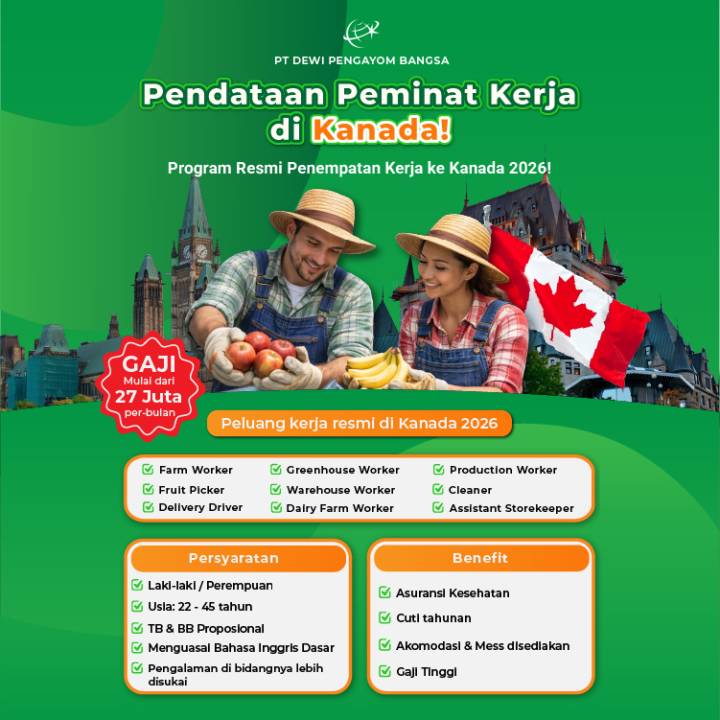 Kerja ke Kanada 2026 – Program Resmi Penempatan dengan Gaji Mulai 27 Juta per BulanProgram kerja ke....